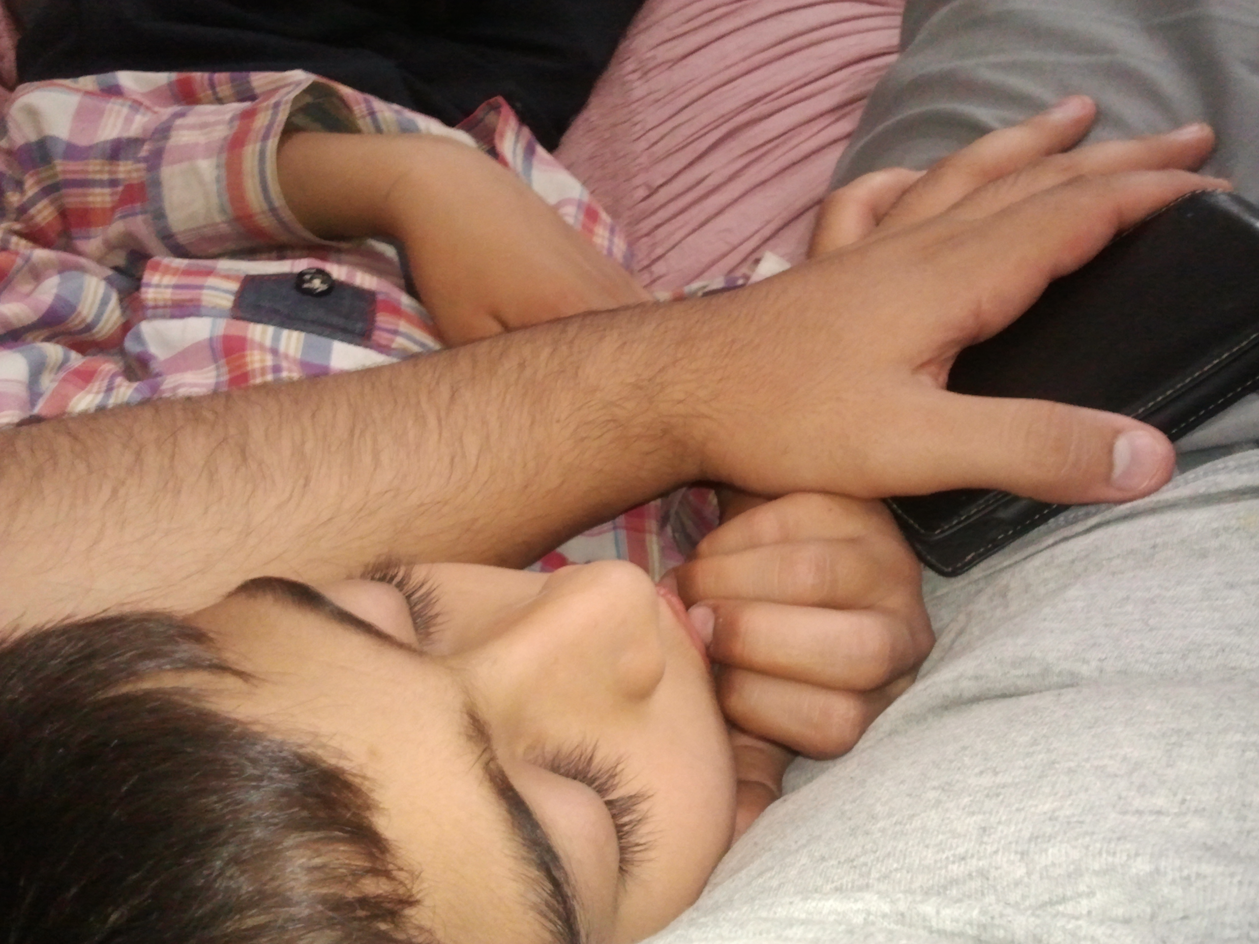 یکی از سه قلوها که تو بغل من خواب رفته!